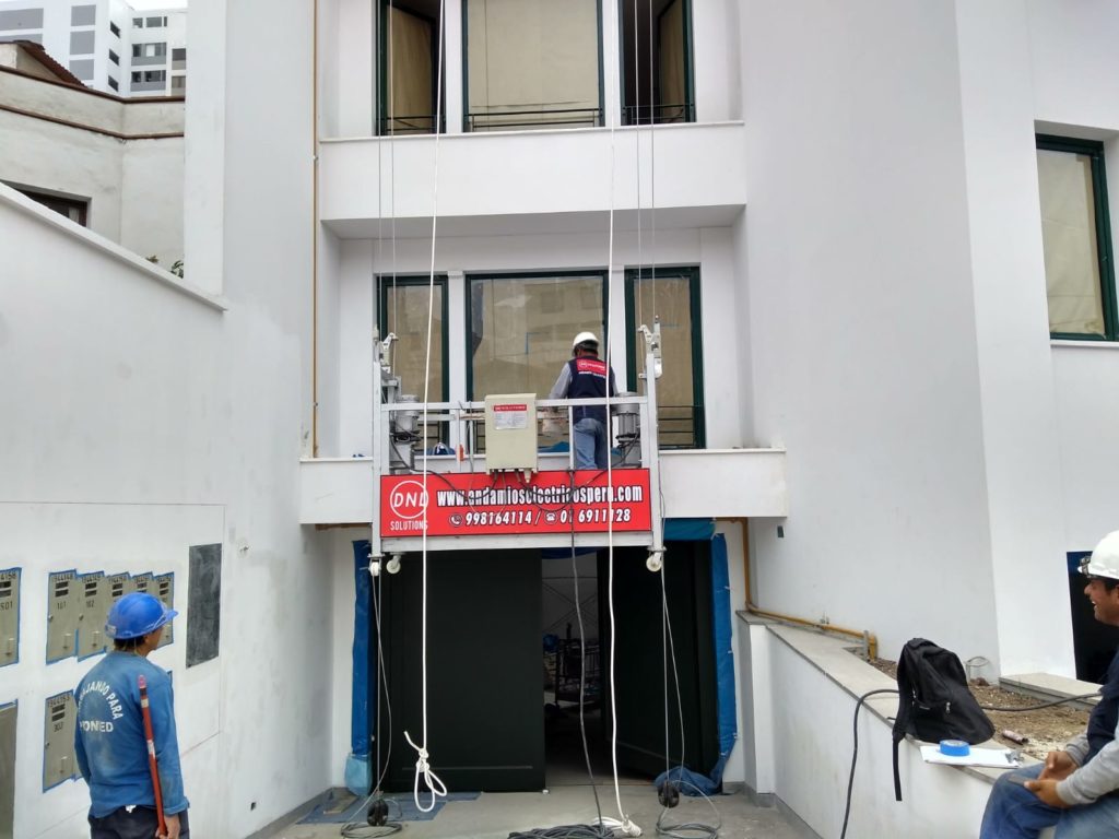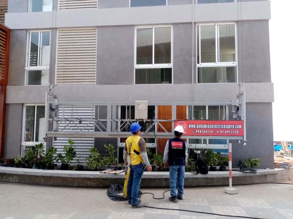 Sistema Modular conformado por estructuras de alta resistencia, de gran ventaja por ser un andamio colgante rápido, gracias a su sistema de motores eléctricos que permite el ascenso y descenso a través de un cómodo control de mando automatizado.